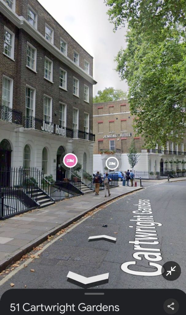 That was Cartwright Gardens! I was absolutely certain of it. A crescent shaped street near King’s Cross, I know it well. But I had to double check on street view.