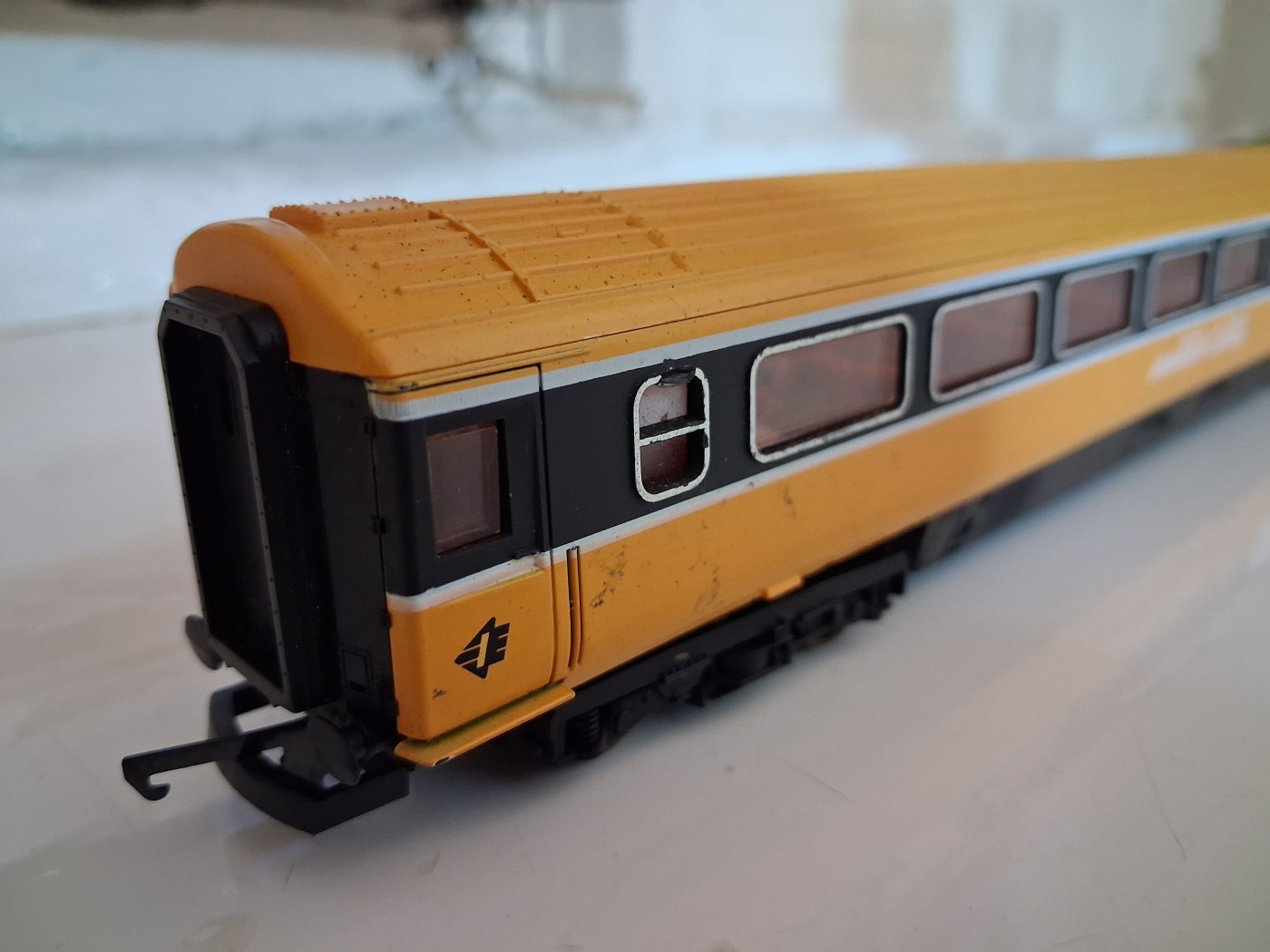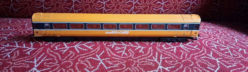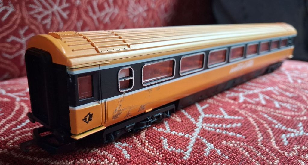For three years now I have been attending the annual Steam Gala at the North Yorkshire Moors Railway, and at Picking station there is a stall selling new and used model trains, and in the box of unboxed odds and ends, the bargain bin, there was a distinctive orange mk3 carriage. It was there in 2023, and I thought about buying it, it was there again in 2024, and I thought about buying it.