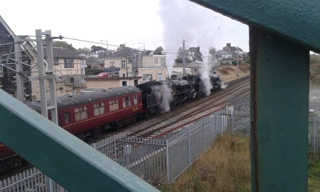 Just up from us was a young man sat hunched, his head in his hands. I only really registered that he was there at because it was just as I was looking in that direction that he suddenly belched the content of his stomach on to the carriage floor. It stank. We got off of that train and waited for the next one.