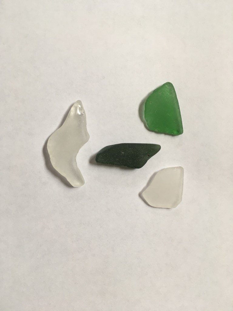 If you like collecting beach glass, and who doesn’t, there are many fine specimens to discover. Some of the stones are perfectly triangular.