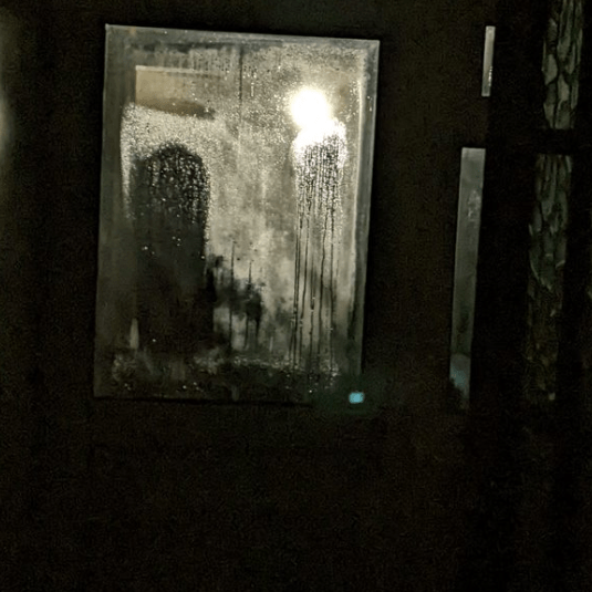 To get to the bathroom, you have to exit the house, entering the unlit porch that has been built to enclose the otherwise outside bathroom, and that porch has a door with a glass window. Sometimes, when the light is right, when the house is dark and the neighbour’s security lamp is on, there is a shape on that glass window, the shape of a figure silhouetted by the light outside.