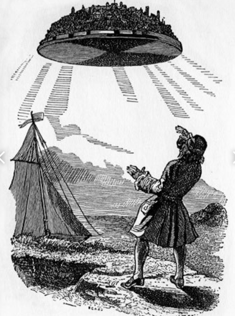 Laputa, Castle in the Sky is an animated movie based loosely on one of the bonkers communities encountered in Jonathan Swift’s classic Gulliver’s Travels. In it, the eponymous Gulliver encounters a madcap people inhabiting a floating castle, directing it with the magnetism of core load stone.