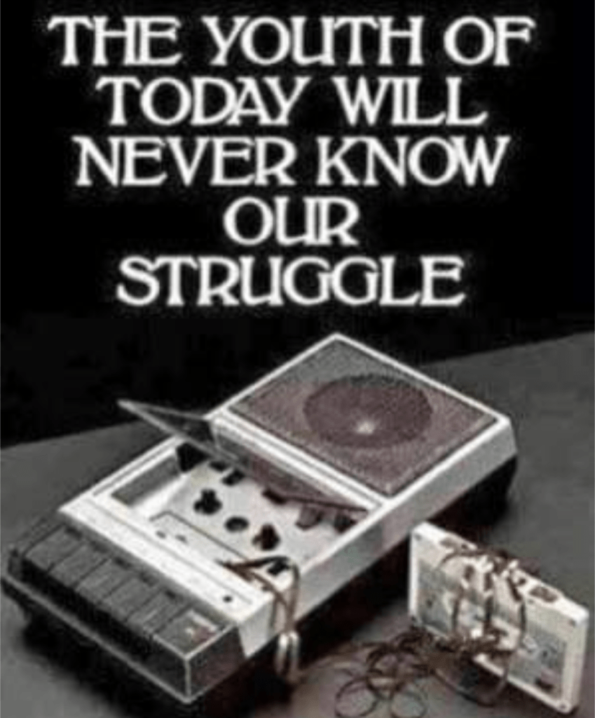 I’m not passing judgement on people’s lives, lifestyles, or life choices. We are where we are and what is is what is. A lot of the effort has been removed from our lives and yet we are in the midst of mental health crisis. I think there is a connection and that the struggle was confined to audio tape.